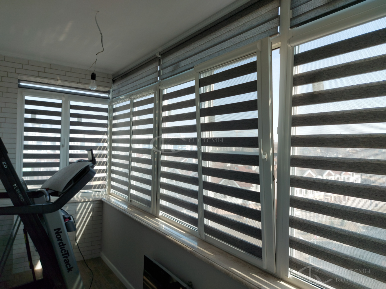 - Балкон/лоджия: защита от солнца и любопытных взглядов. Горизонтальные (алюминиевые, ПВХ) или рулонные.